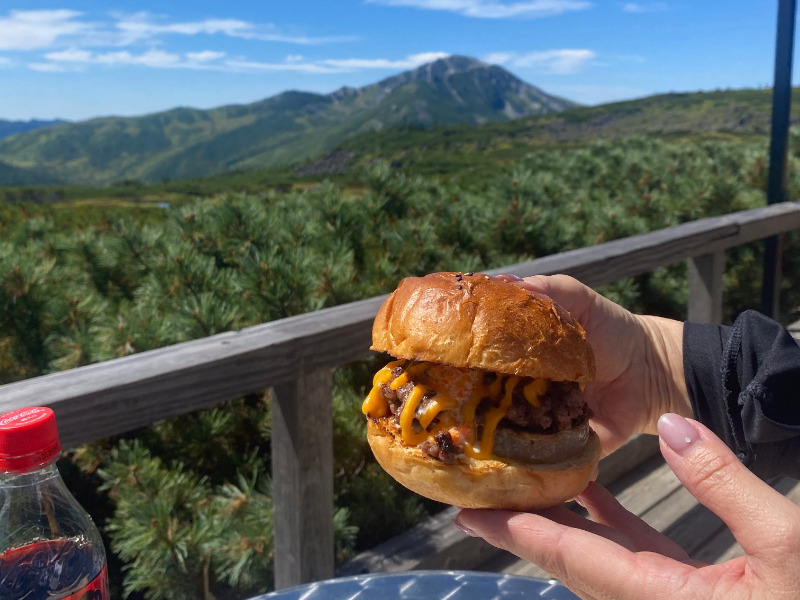 雲ノ平山荘に到着です。雲ノ平山荘は、三俣山荘の経営者であった伊藤正一氏が開設した山小屋で、今では大変オシャレな山小屋で有名ですね。今回の参加者さんは、人気のメニューの一つである「雲ノ平バーガー」を食べるのを楽しみにされていました。