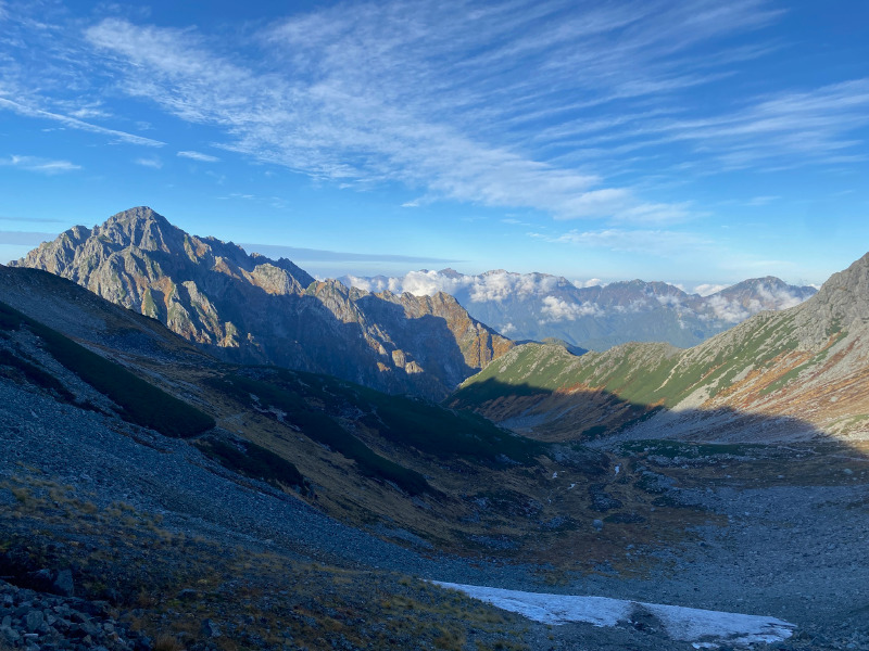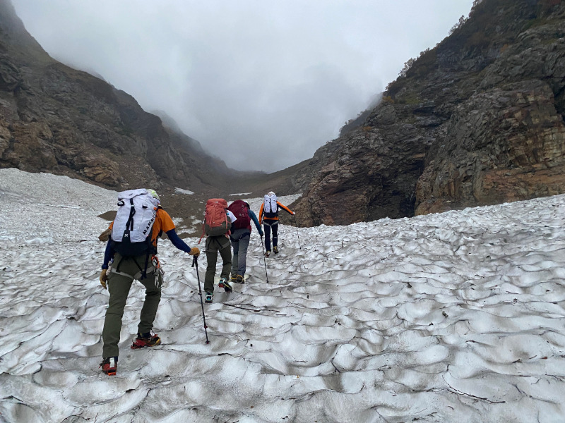 2025年10月6日(月)~9日(木)の3泊4日の日程で奥劔から剱岳の北方稜線を登ってきました。北方稜線は剱岳山頂から北に伸びる稜線で、連続する険しい岩場、雪渓の登り下りと登山の総合的な力を必要とする高難度のバリエーションルートです。当初心配していた雨は降らず、素晴らしい紅葉の山を楽しみながら、充実したバリエーション山行が出来ました。