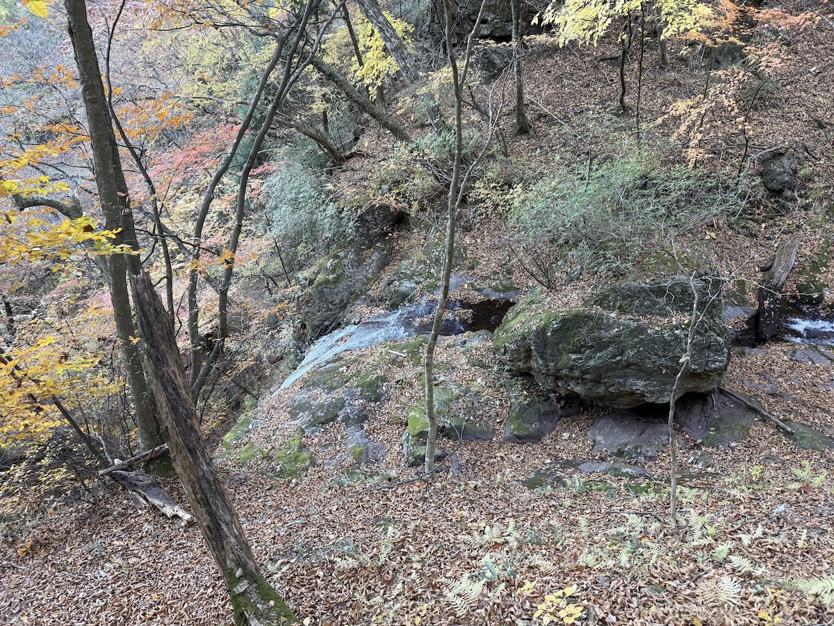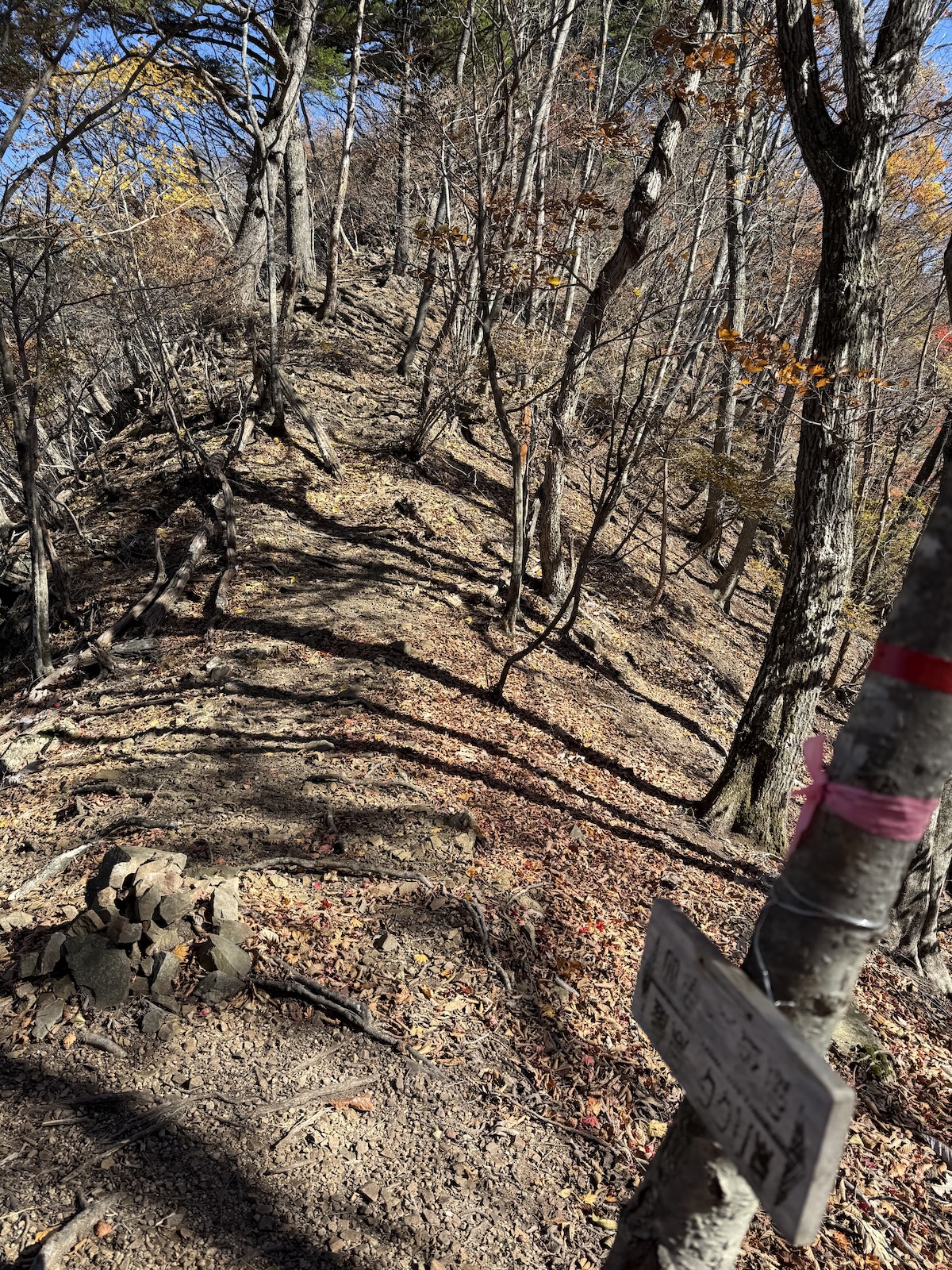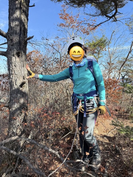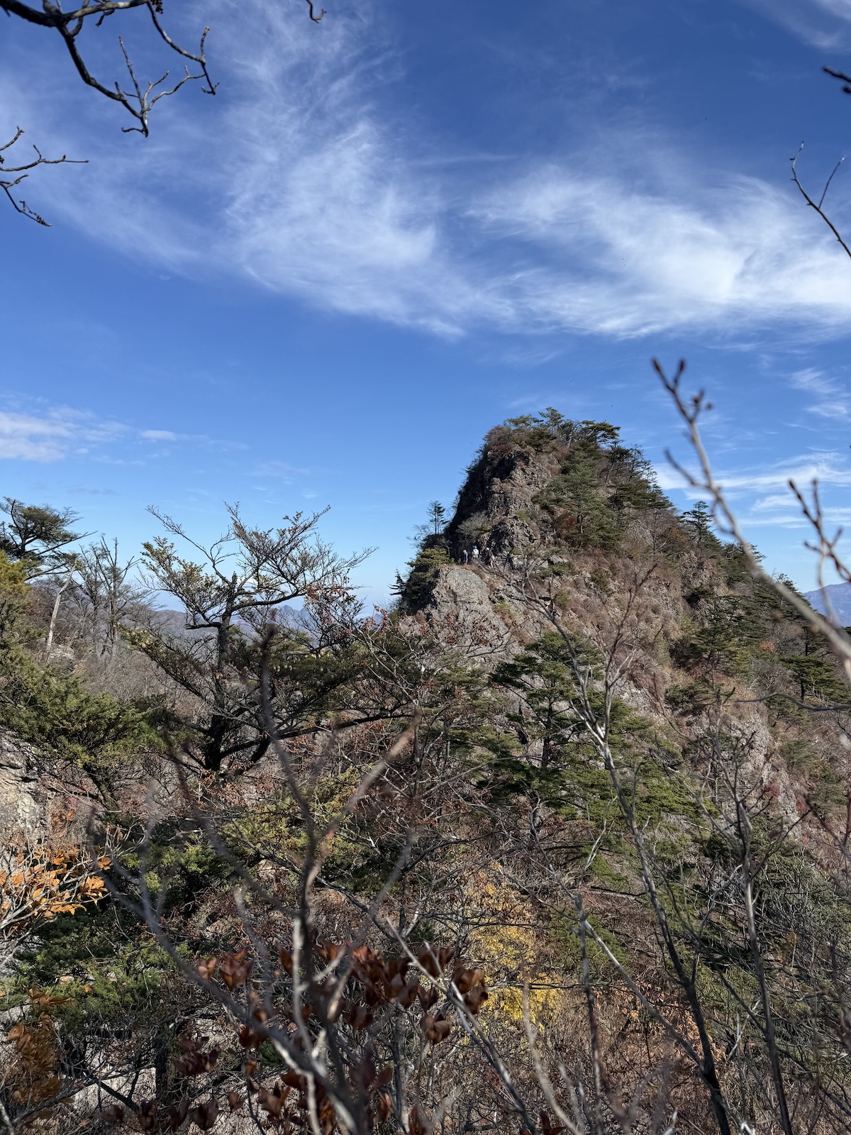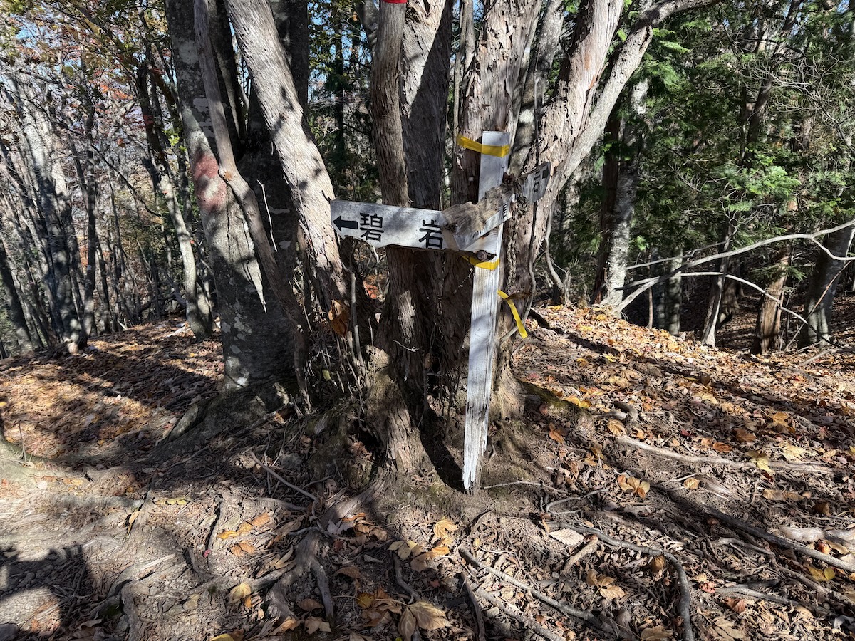 碧岩・大岩登山 西上州のマッターホルン! 2025年11月15日(土)に西上州の碧岩・大岩に行ってきました。 碧岩・大岩は南牧村の中でも奥まった場所に位置し、天を指すように現れる姿から西上州のマッターホルンとも呼ばれています。 三段の滝 碧岩登山口から三段の滝までは美しい沢沿いを進みます 三段の滝からは右壁を登りますが、滑りやすい露岩や急斜面で注意が必要です 落葉で踏み跡が消え、何度が獣道・迷い道を辿ったが、ようやく三段の滝の落口に上がりました ようやく尾根に上がりました 碧岩へは 碧岩の山頂 碧岩から大岩を望む 大岩から碧岩を望む 碧岩は破線ルートで今回はバリエーションの中でも入門コースを歩きました ※事務局より 山行イベントのリクエストやご相談はホームページの「お問い合わせ」よりお願いいたします。講習会などのご依頼も受け付けています。 レポート一覧